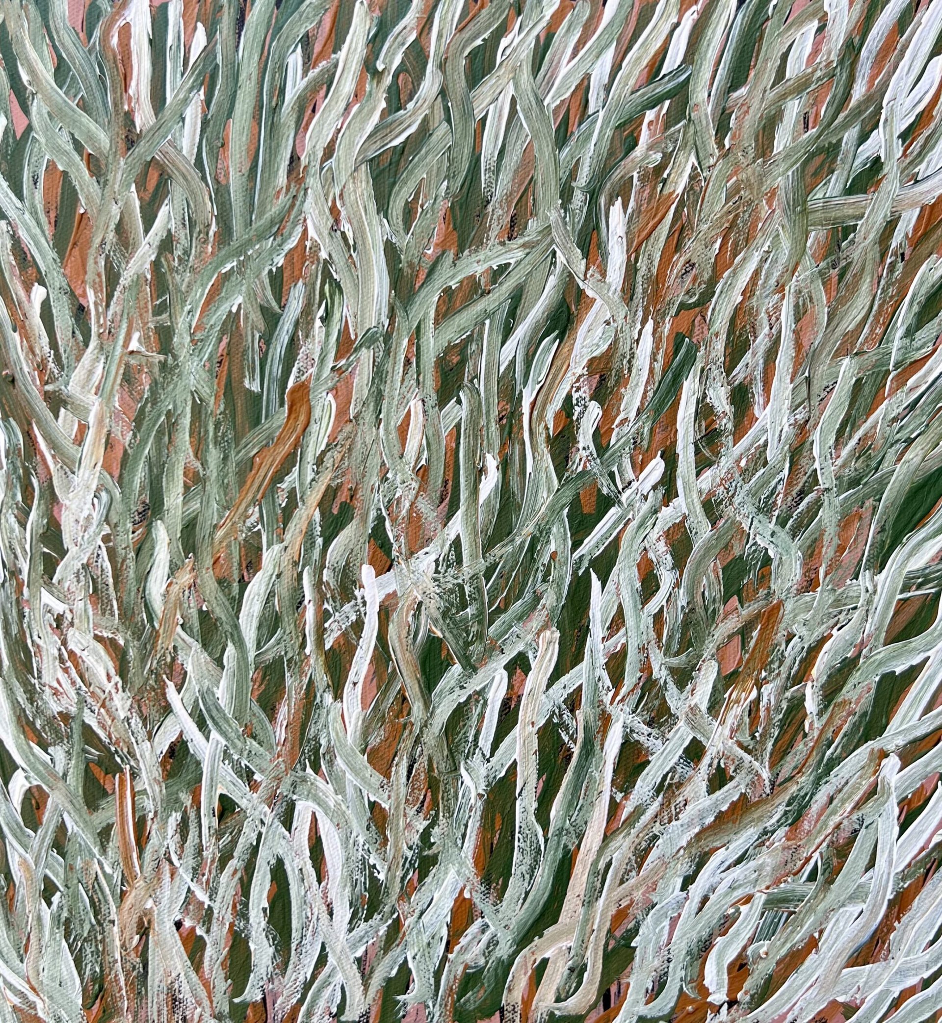 Barbara began painting in the 1990s, encouraged by her son Fred Torres and quickly developed a distinct and emotive abstract style. Her most recognised series, Grass Seed and My Mother’s Country, are celebrated for their layered symbolism and deep connection to the land and Dreaming stories. Exhibiting across Europe, Asia and the United States, Barbara’s work is held in major collections including the National Gallery of Victoria and the Art Gallery of South Australia. Until her passing in 2023, she remained a cultural matriarch, leaving a lasting legacy of strength, storytelling, and artistic innovation through both her family and her art.