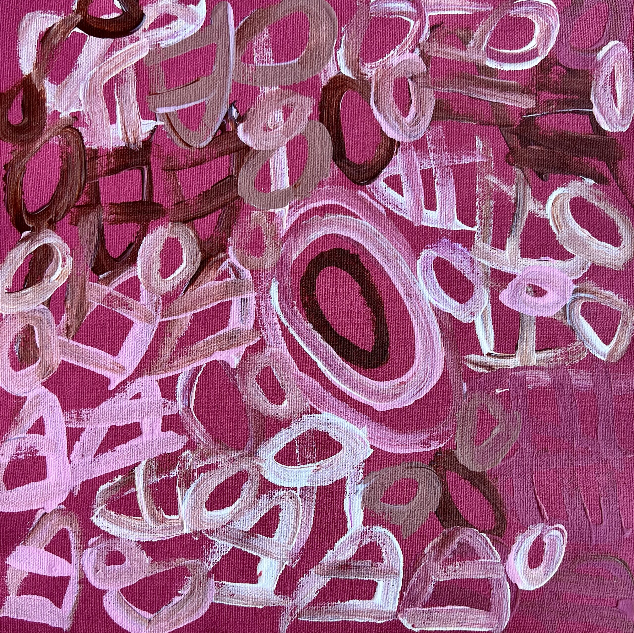 This artwork was painted in 2022 and is 31cm x 31cm in size and has a gorgeous deep raspberry background.