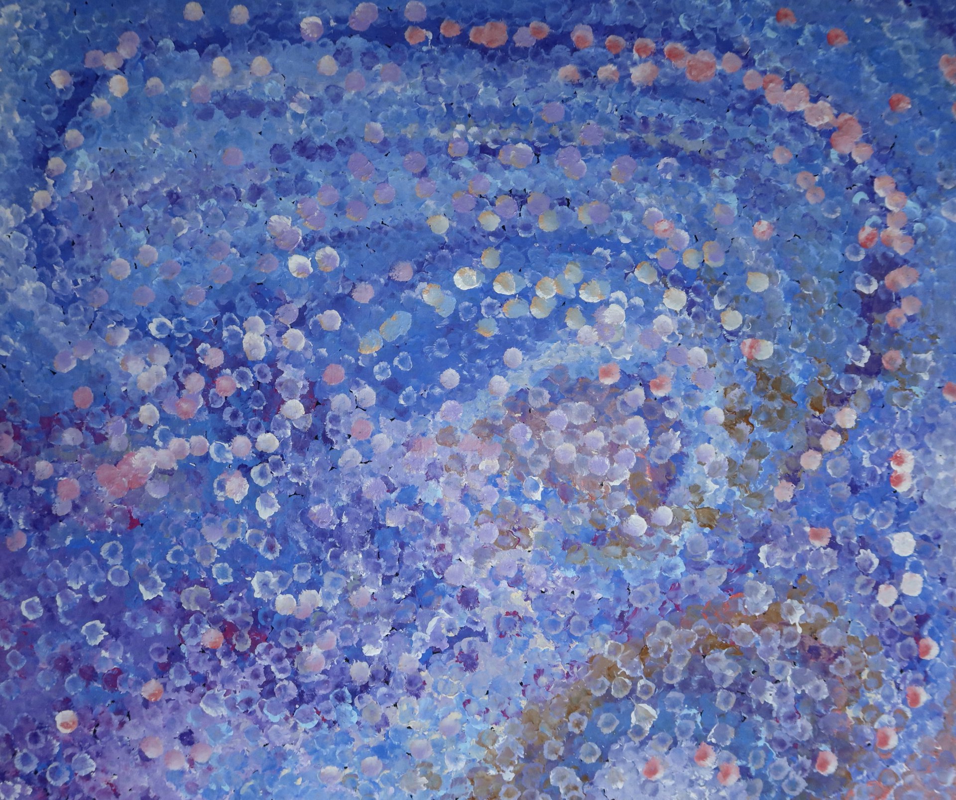 Painted in 2024, this work measures 120cm x 100cm. It is currently stretched and ready to hang, with the artist’s signature featured on the canvas.