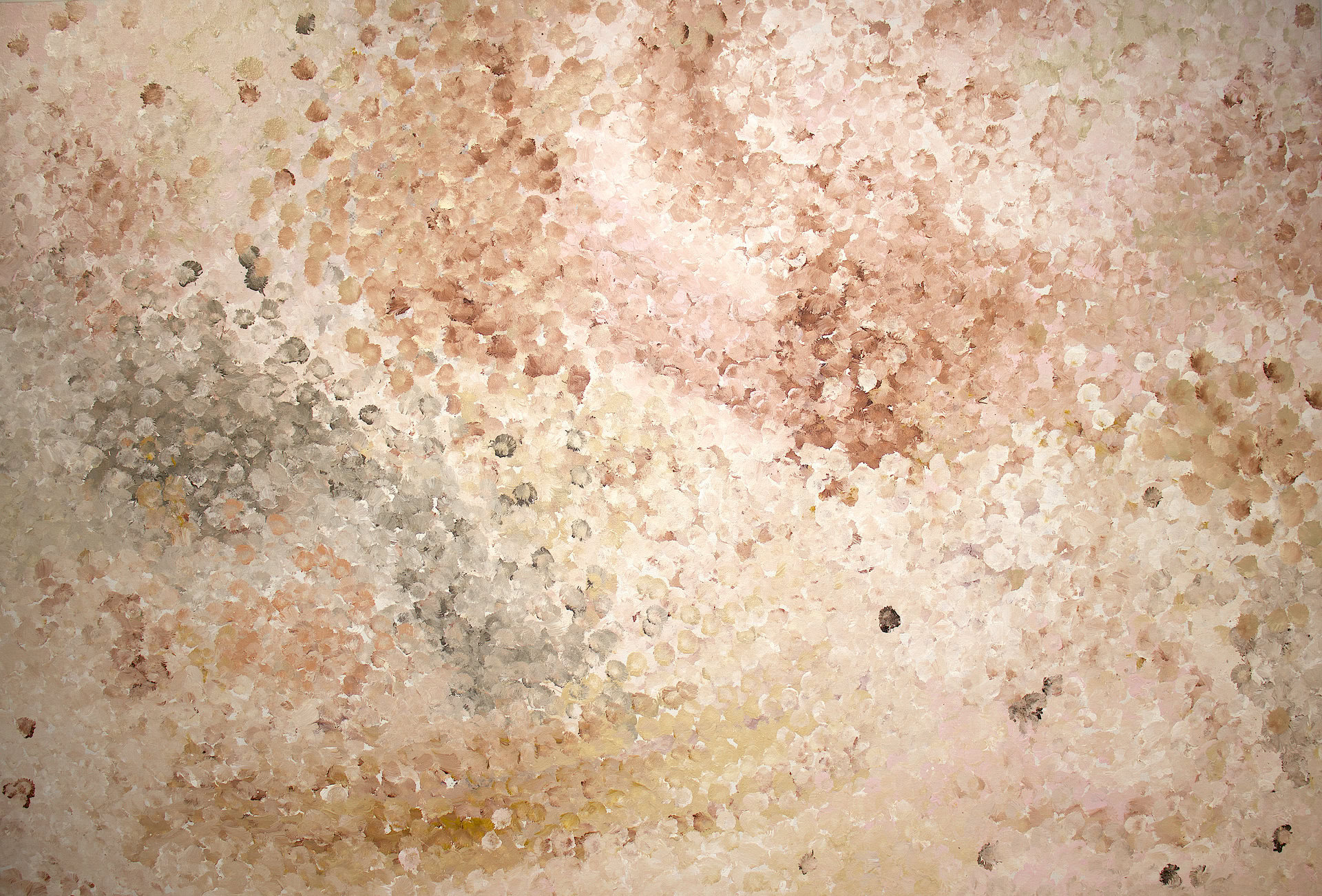 Freddy Purla’s Dreaming, My Grandmother’s Country, honours his ancestral land at Atnwengerrp in Utopia, Northern Territory, and the legacy of his great aunt, Emily Kame Kngwarreye. Through his signature ‘dub dub’ style, Purla captures the heat, seasons, wildflowers, and sacred sites of Country, embedding stories of bush tucker, ceremony, and ancestral journeys. Each work is a visual songline — a tribute of gratitude to the land that has sustained his family for thousands of years.