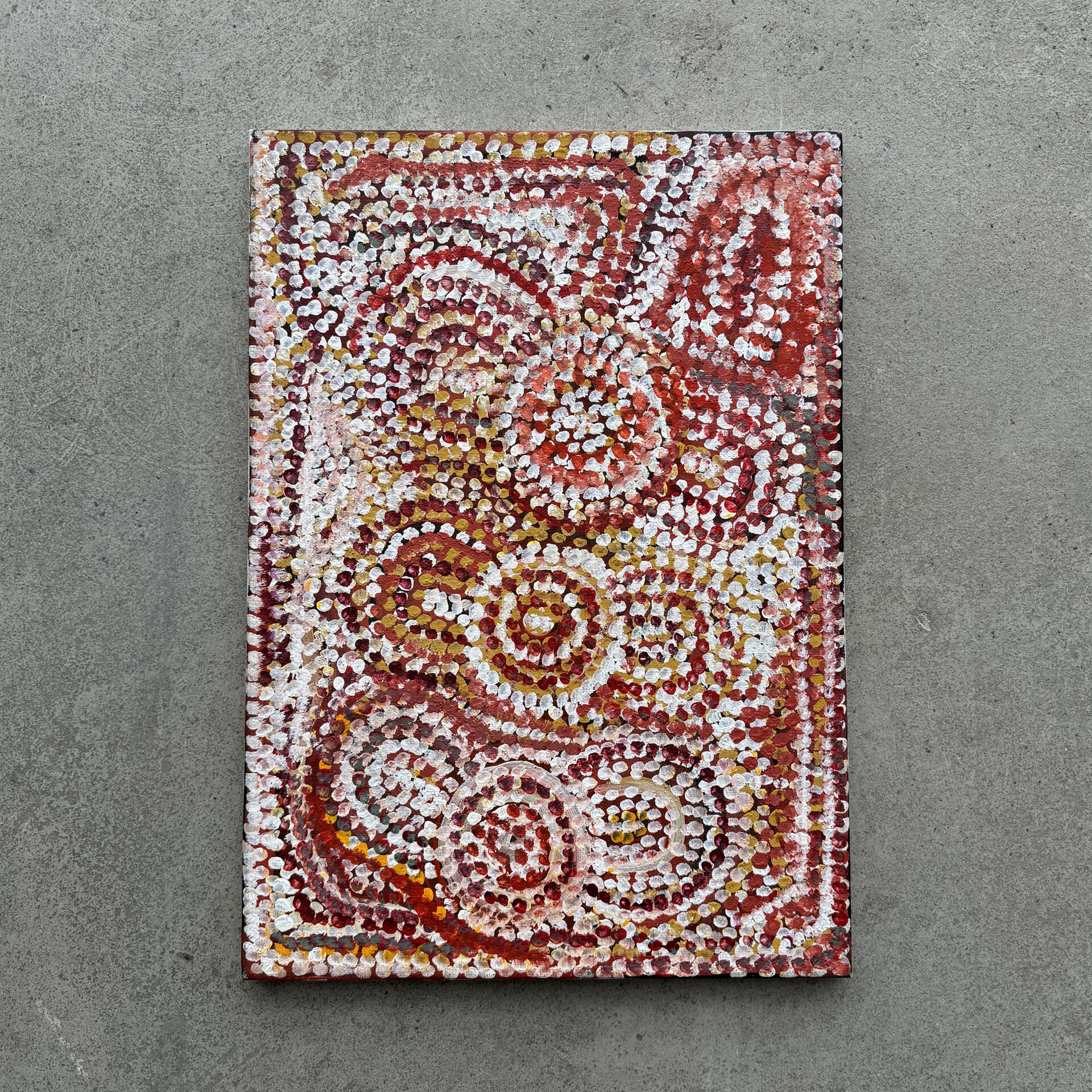 Purla’s art reflects the tough yet beautiful Northern Territory landscape. He captures the essence of the desert’s heat, the ever-changing seasons, and the vibrant wildflowers. This art is a way of thanking the land for providing sustenance to him and his community.
