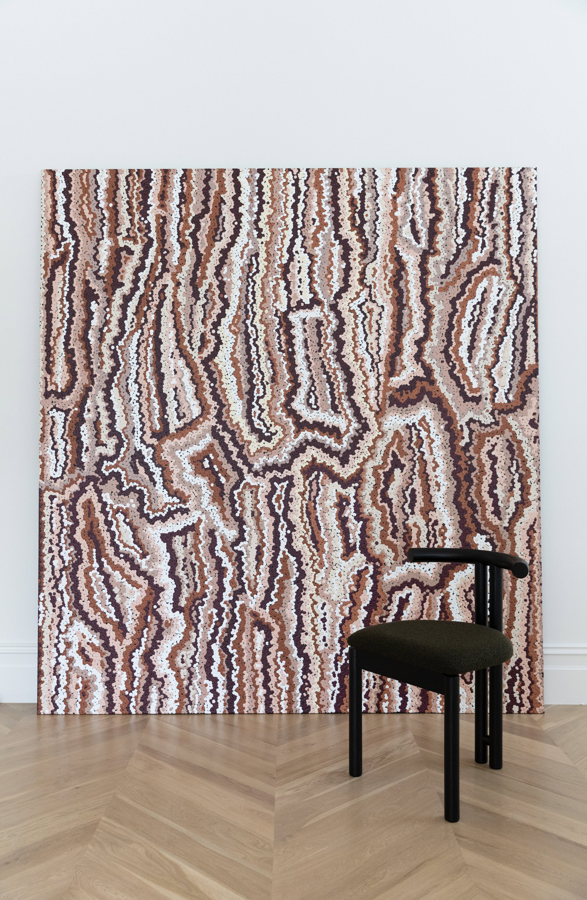 The works are both a cultural record and a visual tribute. Each trackline embodies ancestral knowledge, preserving the maps of movement, ceremony, and connection across generations. Through this clarity, Jade continues her family’s tradition of painting Country in a way that is both deeply rooted in heritage and resonant for the present.