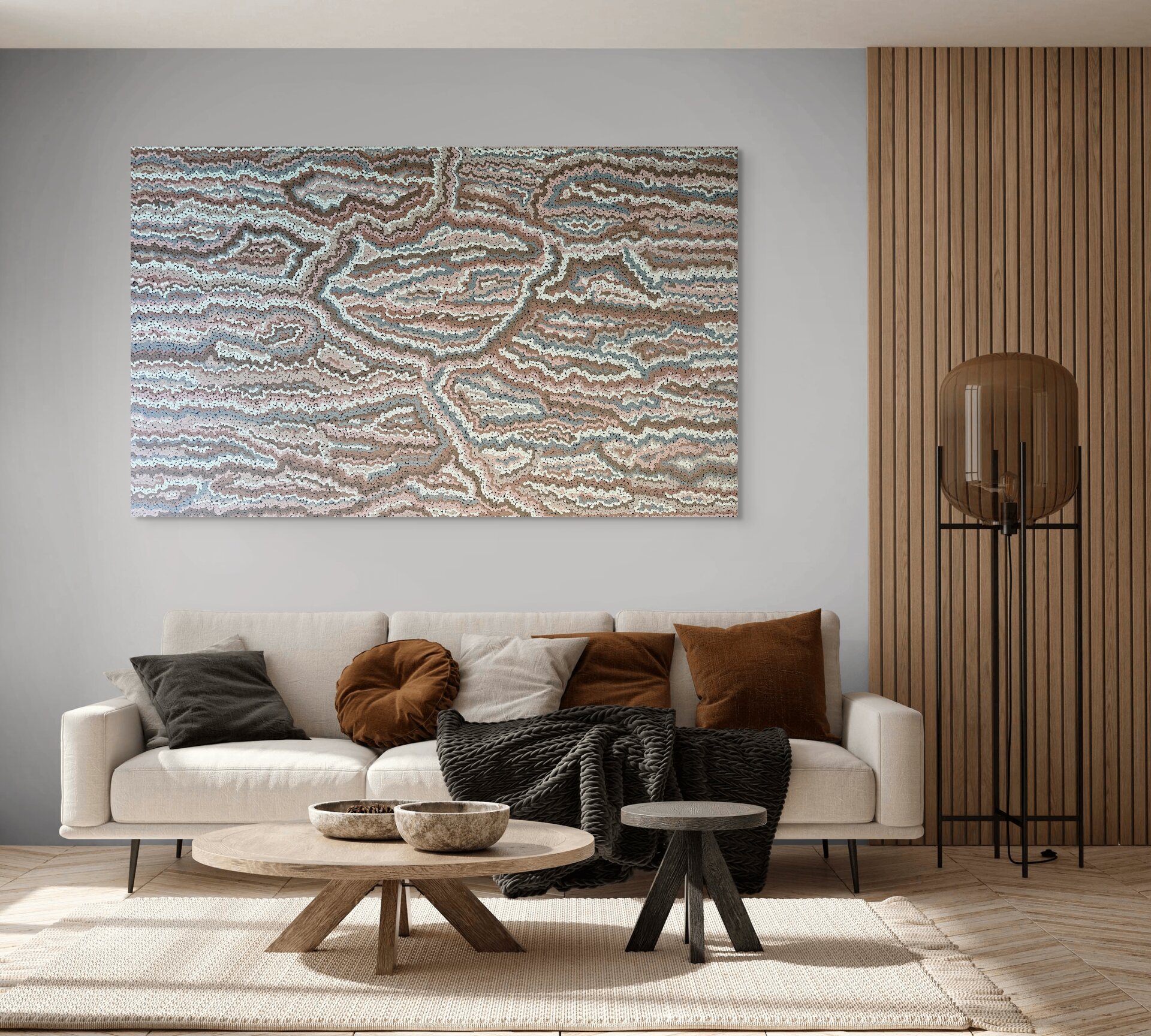 This piece is currently stretched and was featured and styled in the Hatherley House by Genworth Group.