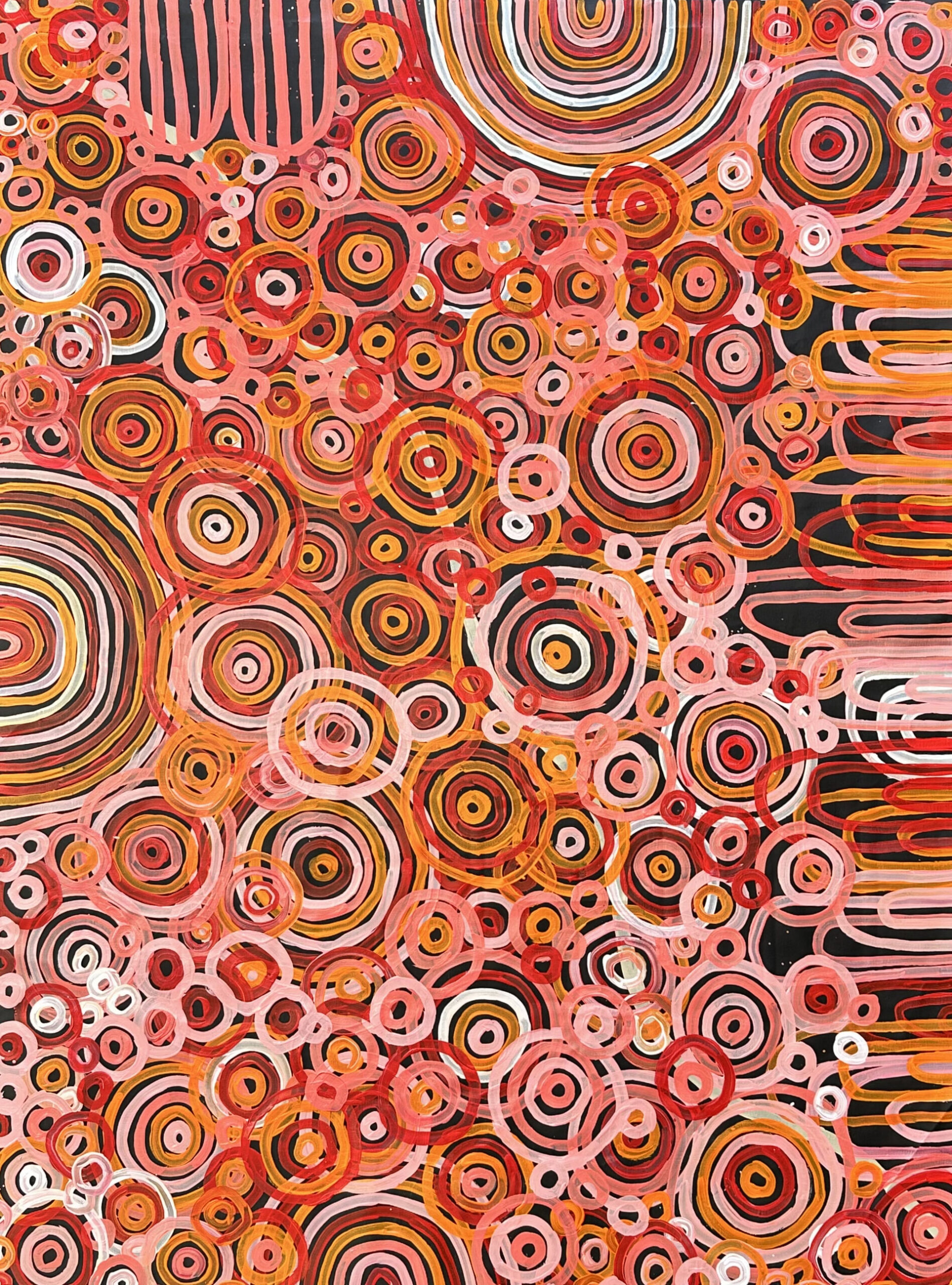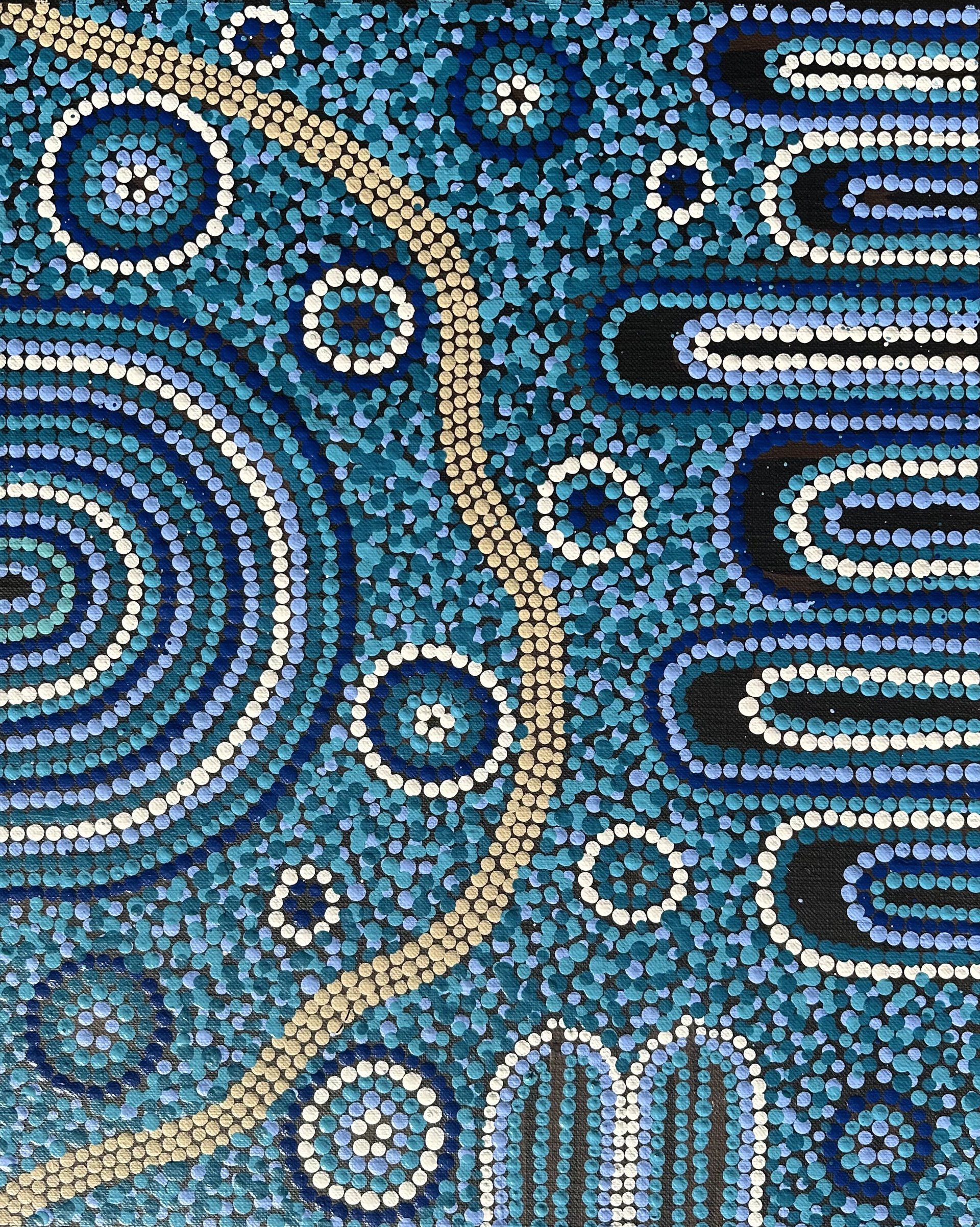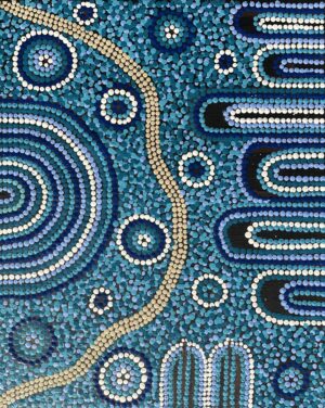 Mariah’s paintings represent the dreaming of their families country is ‘Atnwengerrp’ titled ‘Awelye – Teaching Awelye to young girls’.