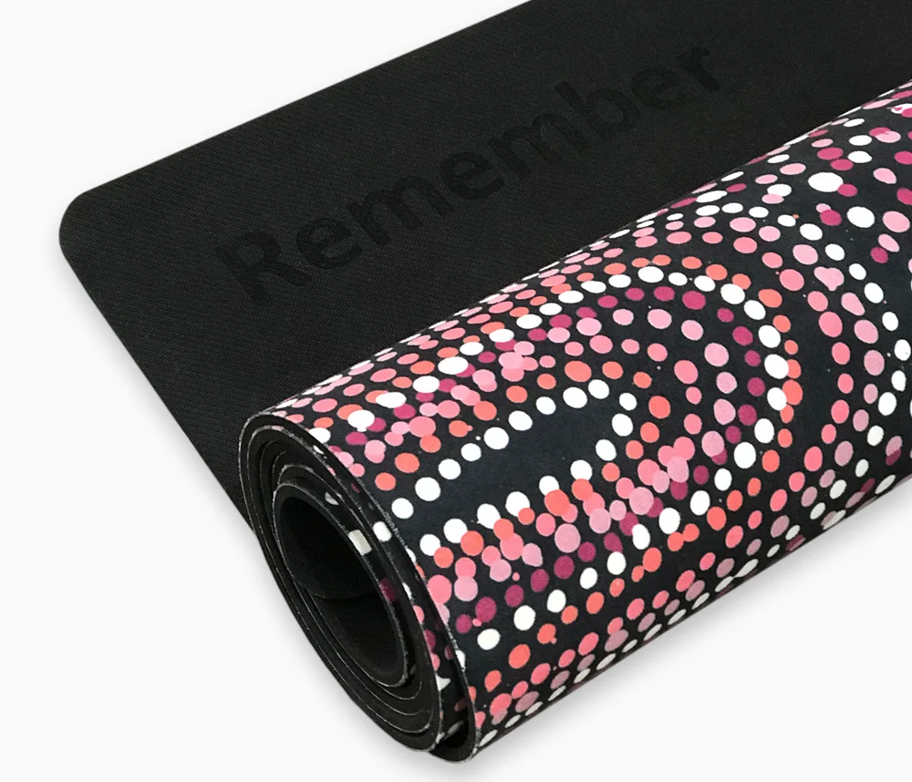 My mission and creative inspiration to launch this collection of yoga mats is to remember Australia’s true history and educate future generations. To embody this, the word Remember is embossed onto each mat. Remember that we stand together on Aboriginal land, which is an opportunity to celebrate the oldest living culture in the world.